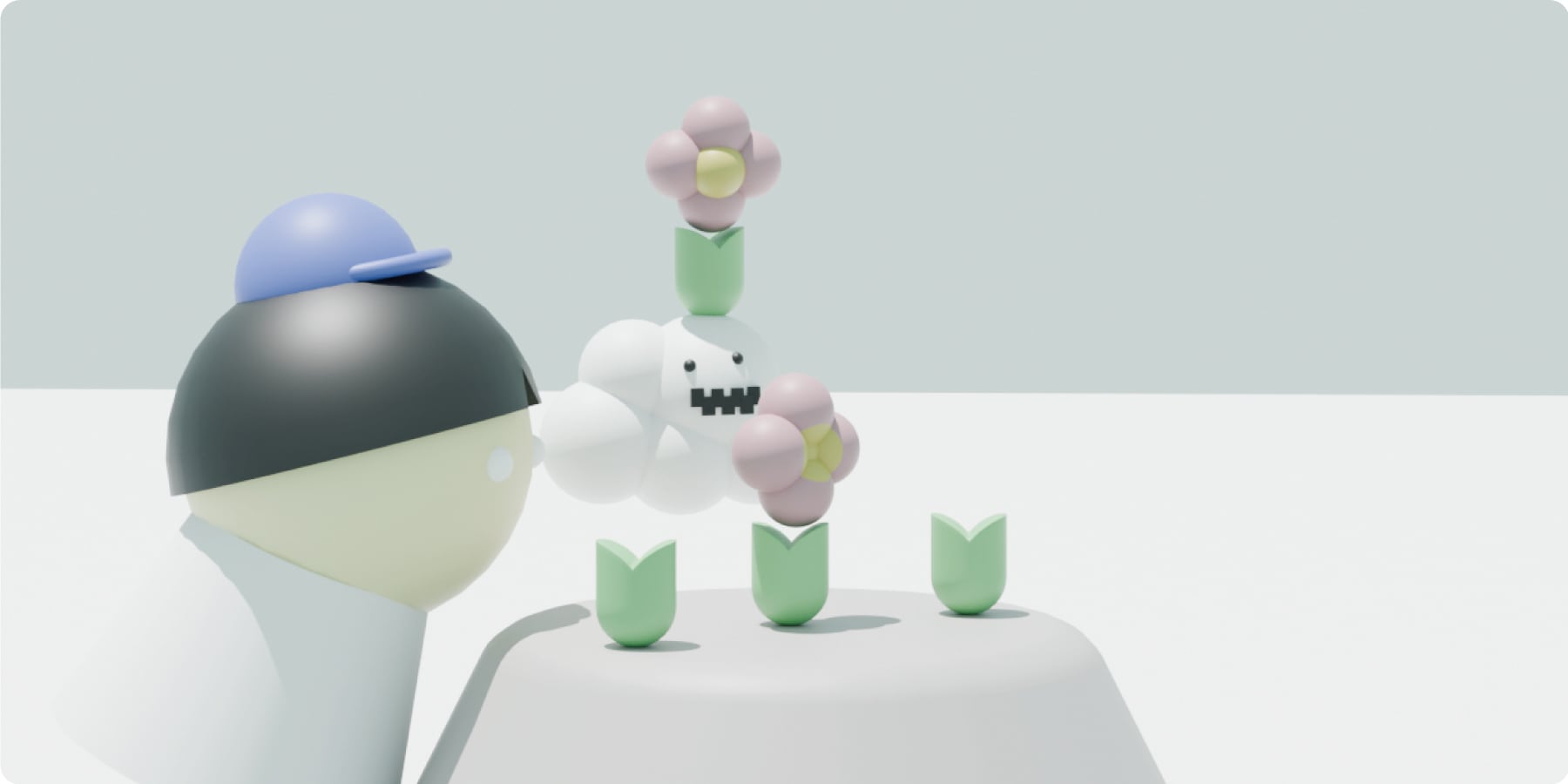 紙媒体、3Dプリント造形物、その他さまざまな媒体・素材を用いて、半ば実験的な展開を訪れる方たちに観測してもらえればと思っています。この子たちがあなたにとって、本来無意識の内に流れ行くはずだったその瞬間に、それを目にすることで、ほんの少しでもポジティブなエッセンスが心に染み込むトリガーとなってくれる存在であることを願います。